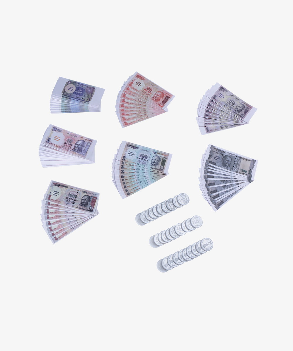 The Currency Kit Box is a practical and interactive learning tool designed to make the concept of money meaningful for children. Using realistic notes and coins, it provides a concrete real-life experience of numbers, helping learners understand place value in one, two, three, and multi-digit numbers. It also teaches how to identify currency value, make change, and perform addition and subtraction in a fun, real-world context. Through role-play and problem-solving activities, children build communication skills, logical thinking, and financial awareness—all while enjoying themselves.
