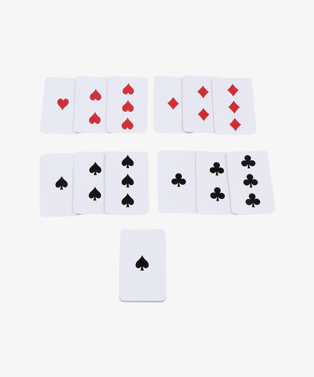 36 cards numbered 1–9 in four suits: Spades, Hearts, Clubs, and Diamonds
