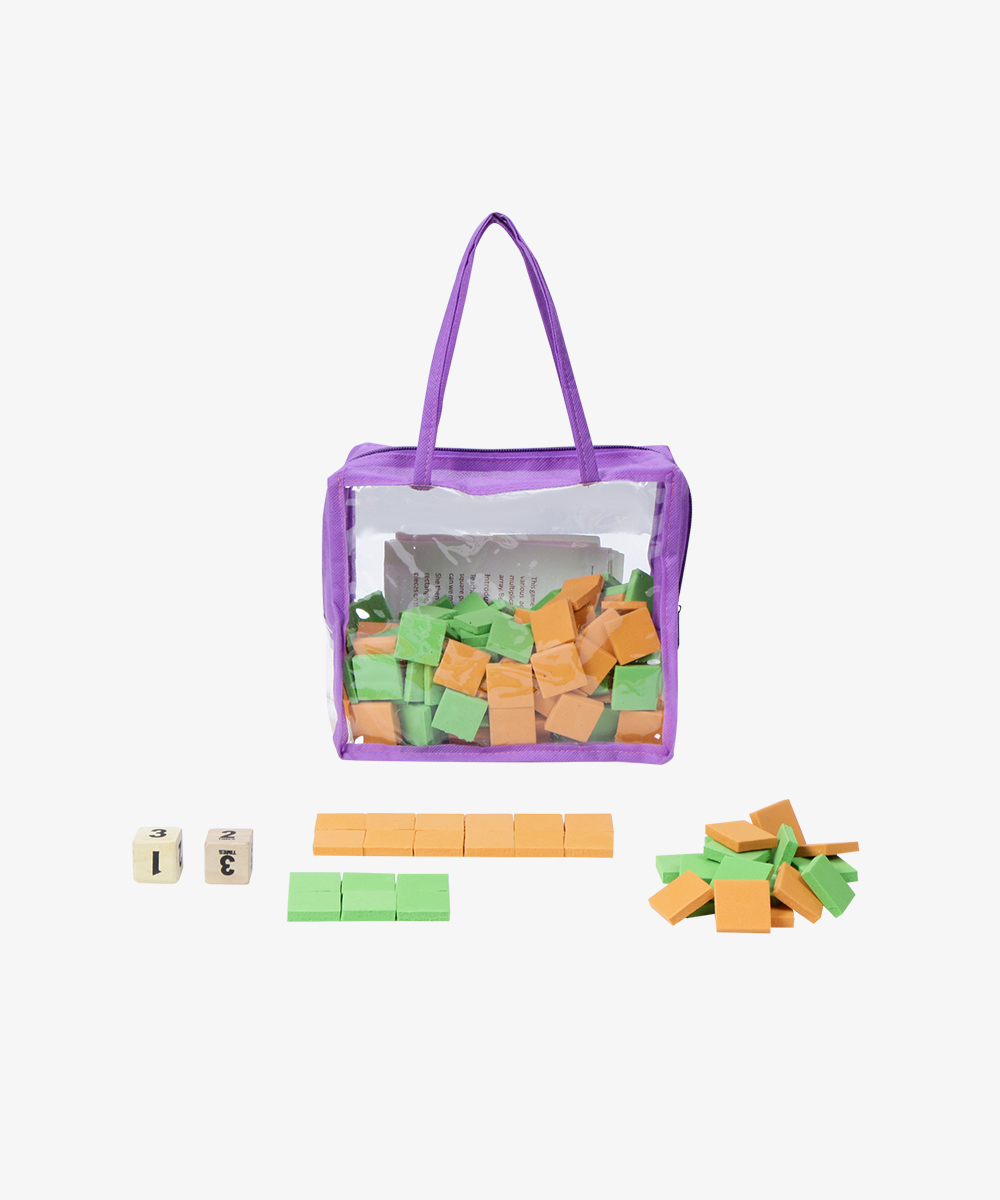 A fun, hands-on multiplication game using colorful squares and dice to help children visualize and understand the concept of multiplication.